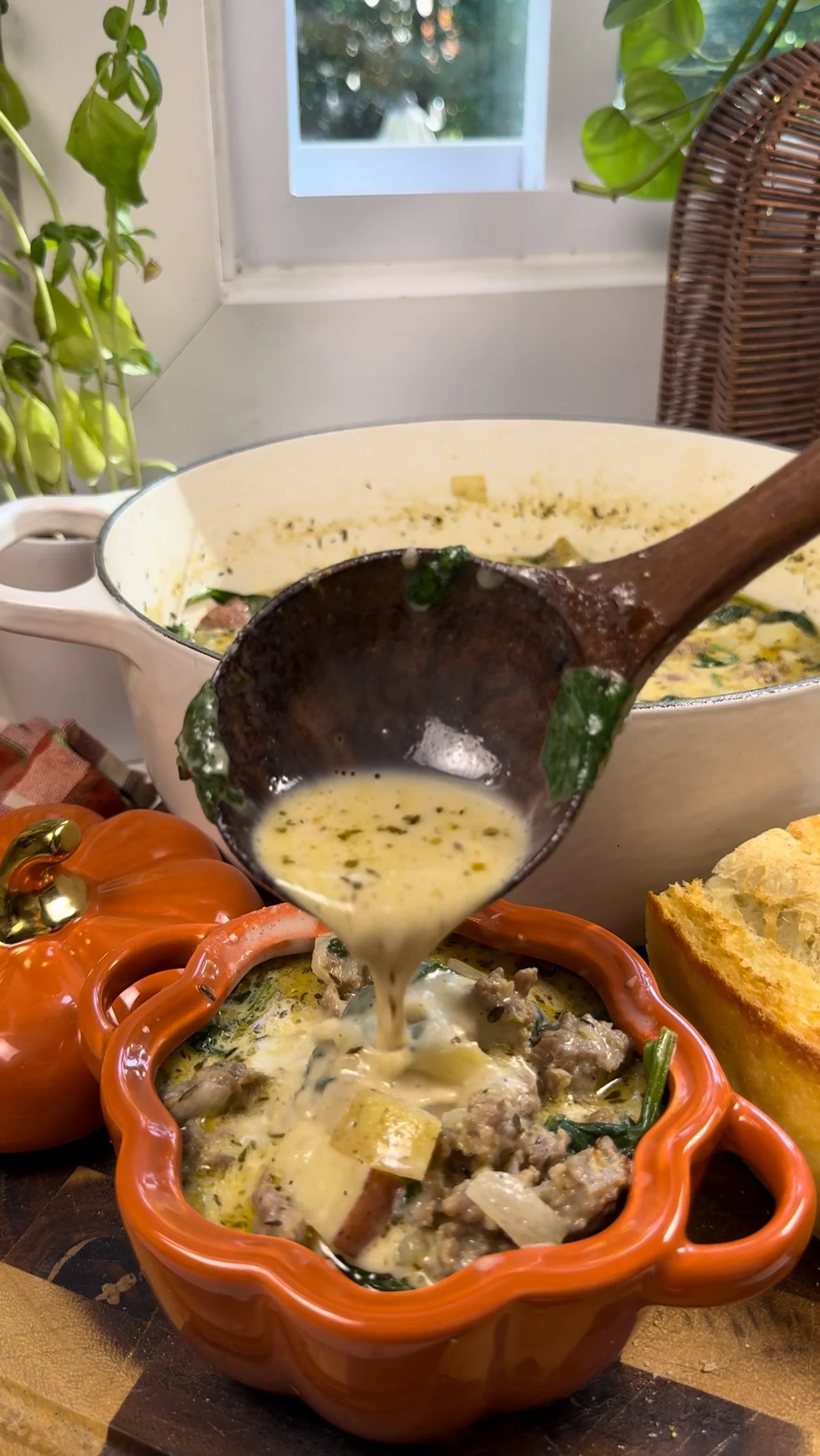 You all know I love soup, and this one might be my new favorite. 🥣 Sausage, potatoes, a little spinach, and it’s super creamy thanks to cream cheese. Perfect for fall dinners.