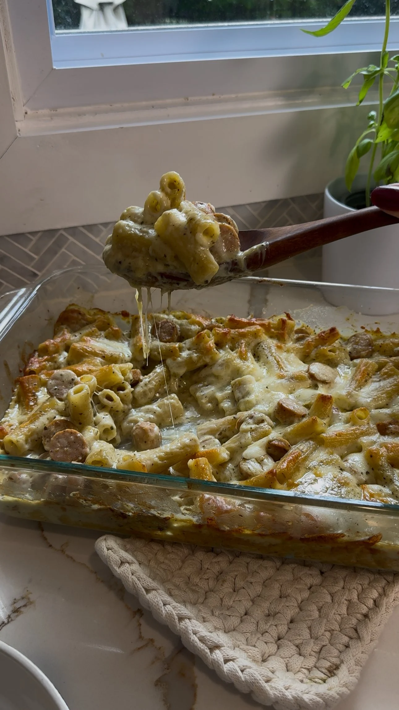 5. Cover tightly with foil and bake for 35 minutes. Remove foil and bake uncovered for another 10–15 minutes, until pasta is tender and top is golden bubbly. You can broil the last few minutes.